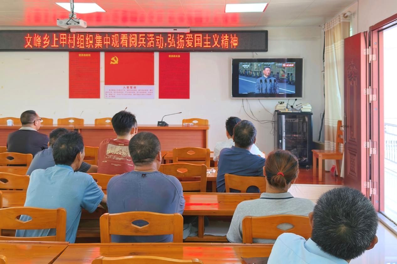 9月3日上午,学校驻村工作队组织村民代表在上甲村村委会二楼会议室集中观看了纪念中国人民抗日战争暨世界反法西斯战争胜利80周年大会。